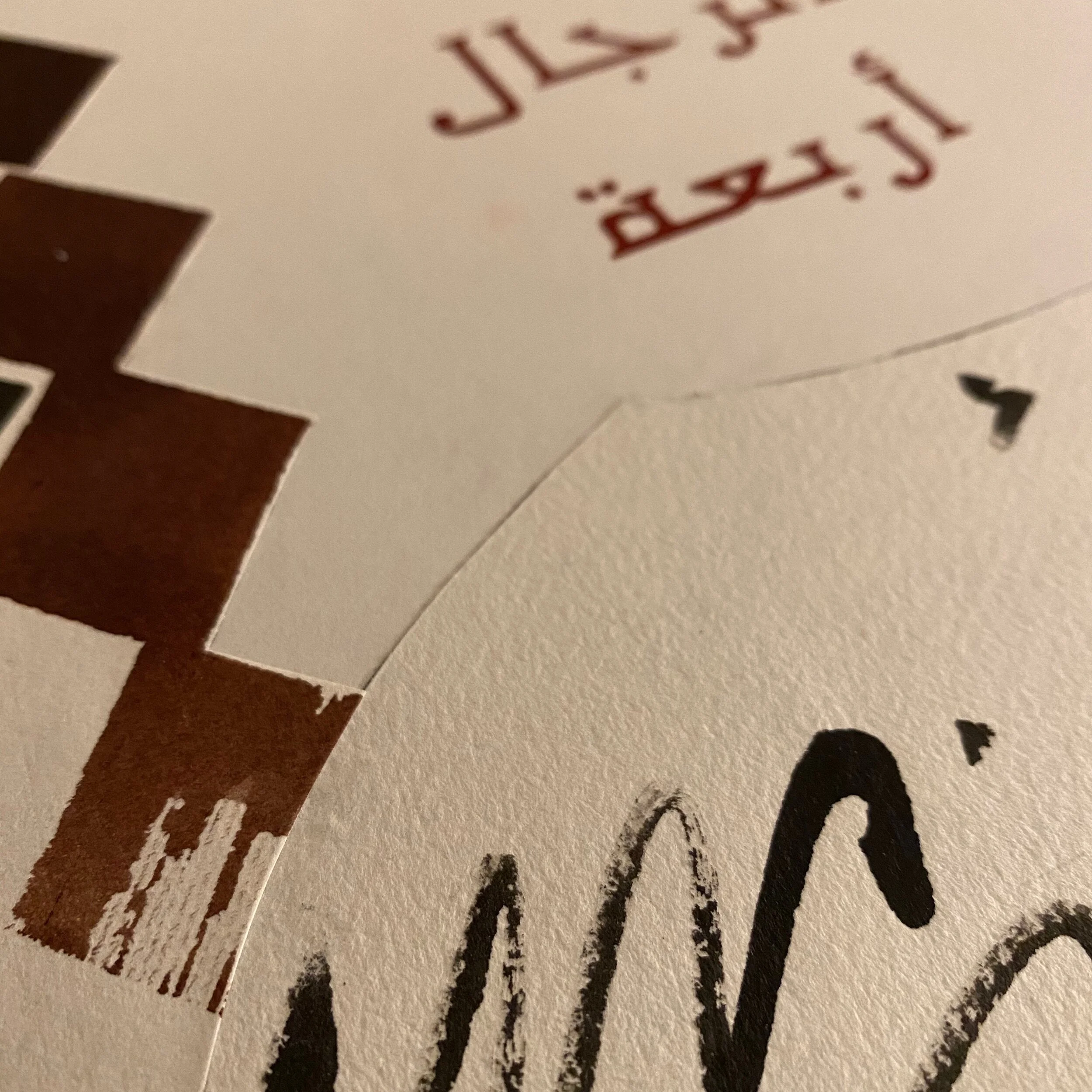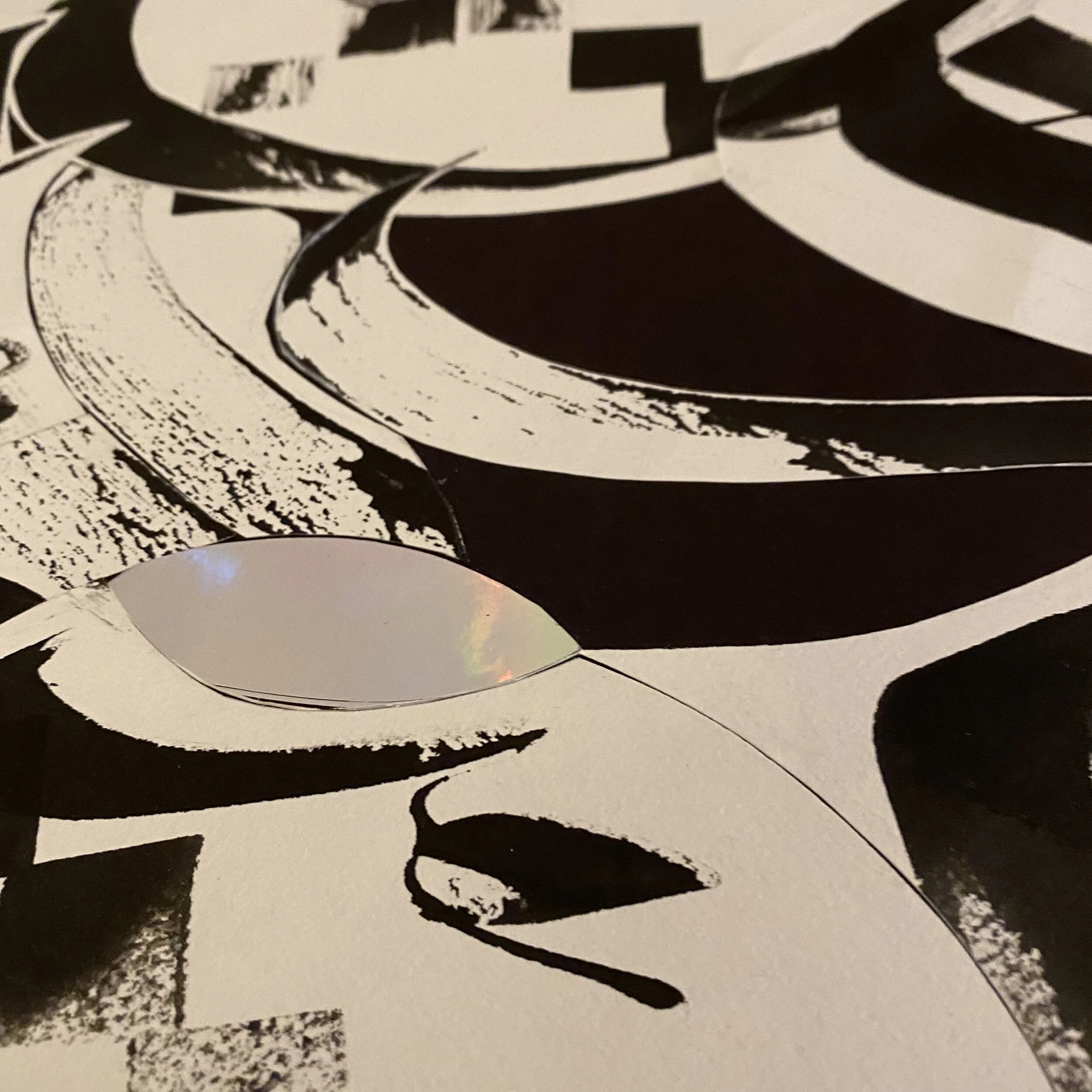 Sumi ink and fountain pen ink on canvas paper (collage).